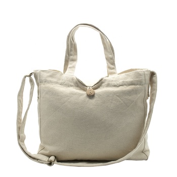 Tas Tote kanvas katun 12 oz 350 Gsm ramah lingkungan besar (>50cm) tali bahu dapat disesuaikan belanja warna alami